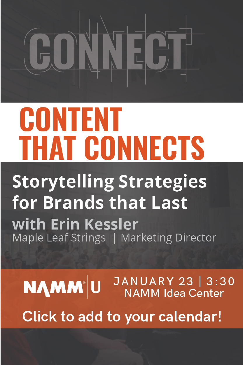 It’s about the stories you tell and how they make people feel. In this session, discover simple frameworks anyone can use to craft marketing that resonates emotionally and sticks with your audience. Whether you’re a retailer, manufacturer or musician, Erin Kessler of Maple Leaf Strings will ensure that you leave with practical tools to start telling better brand stories today.